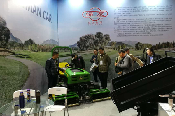 2017年3月17-19日綠友集團參加了在上海跨國采購會展中心舉辦的2017年體育場地建造管理及設備展覽會”。現場展出了一臺約翰迪爾2653B坐騎式三聯剪草機,工作人員對設備的性能、參數進行介紹,吸引了很多客戶來展位上參觀。