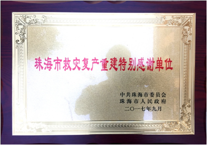 9月,中共珠海市委市人民政府授予綠友集團“珠海市救災重建特別感謝單位”榮譽稱號。