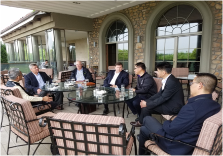 5月3日,美國迪爾公司草坪設備全球市場總監、全球高爾夫產品線經理一行3人走訪了上海地區高爾夫客戶。