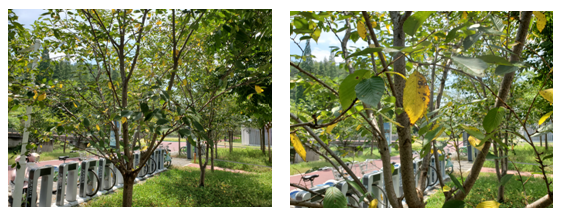 除此之外,筆者觀察到,長三角地區許多早櫻在受到高溫脅迫,出現樹勢衰弱、葉片枯黃的情況,各種病菌侵入,嚴重的出現了葉片穿孔。