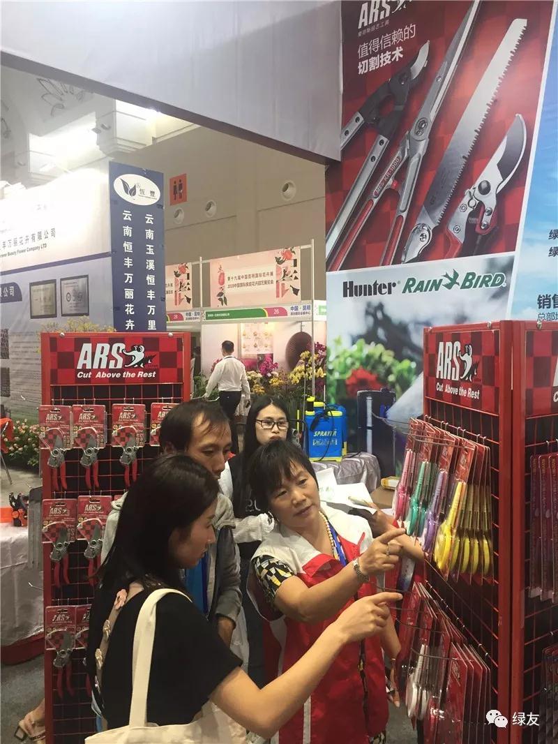 昆明綠友參加了此次展會,展出了愛麗斯修剪工具、先正達植保低毒藥品和灌溉噴頭等一系列產品。展會采用標準展位,展品類少而精,吸引了眾多專業觀眾。他們大多都是花卉養殖基地的專業人士,少部分是開花店或插花培訓學校的藝術人才。綠友工作人員以飽滿的精神和積極的狀態接待到場客戶。綠友集團獨家代理的愛麗斯修剪工具使很多客戶都是慕名而來,三天銷售額破萬。