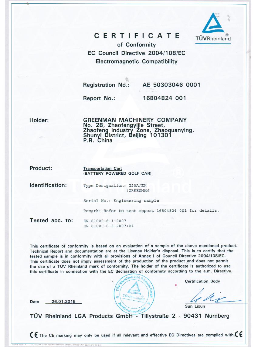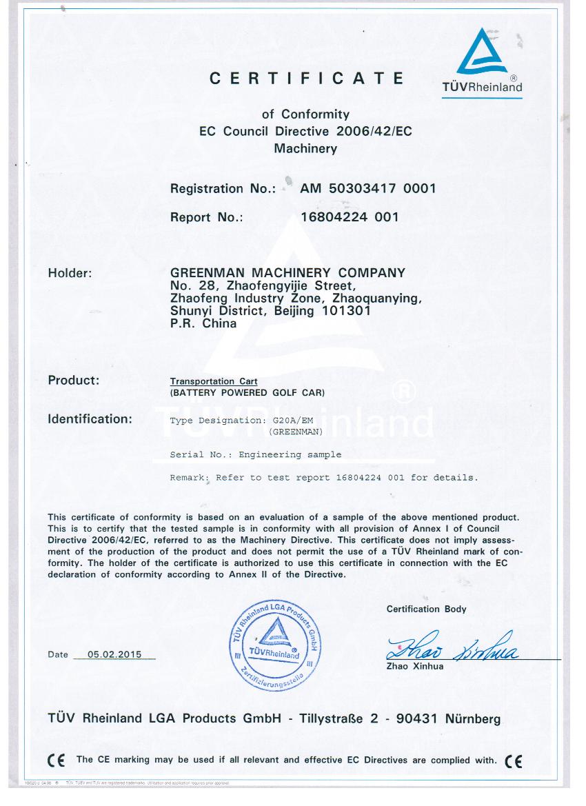 綠友集團自主研發(fā)的GREENMAN兩座電瓶車golf car通過了CE認(rèn)證。