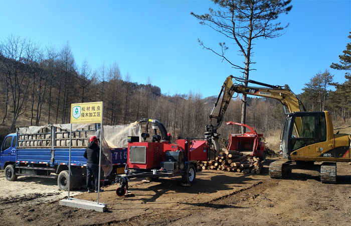 綠友集團(tuán)總部森防裝備事業(yè)部、售后服務(wù)部、撫順綠友園林機(jī)械有限公司協(xié)同在撫順市大伙房實驗林場現(xiàn)場給參會人員講解、演示了GREENMAN CM15R病疫木粉碎機(jī)、CH25C病疫木粉碎機(jī)在山場就地粉碎處理感染松材線蟲病疫木方案,與會嘉賓紛紛記錄、拍照,索取資料,積極響應(yīng)國家關(guān)于松材線蟲病疫木山場就地粉碎處理的相關(guān)政策。