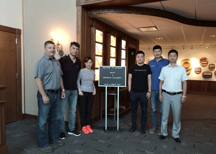 在木霸克國際市場總經理Curt 先生的帶領下,綠友一行進入木霸克的生產車間,了解每一臺高品質產品是如何生產出來。從生產計劃,金屬加工,材料分選,品質控制,現場管理,配件存儲,人員培訓,木霸克工廠毫無保留展示每一處生產細節,而依靠這些細節的管控才能造就木霸克的品質和市場認可。參觀期間,Curt特意強調了材料分選是木霸克設備和其他品牌產品的重要區別,木霸克針對每一部位應用和受力不用,在材料選擇都會進行區分,例如進料口下方的金屬板面由于需要經受長時間撞擊,這塊板面的選擇使用和美國坦克裝甲相同材料,并以不同顏色區分開。當消費者購買設備時,面對不同品牌產品都是光鮮亮麗,而隱藏在漆層下面的細節決定他們之間的區別,發現這些細節的不同則需要深入生產車間,而這也是木霸克最希望客戶參觀他們生產的原因。