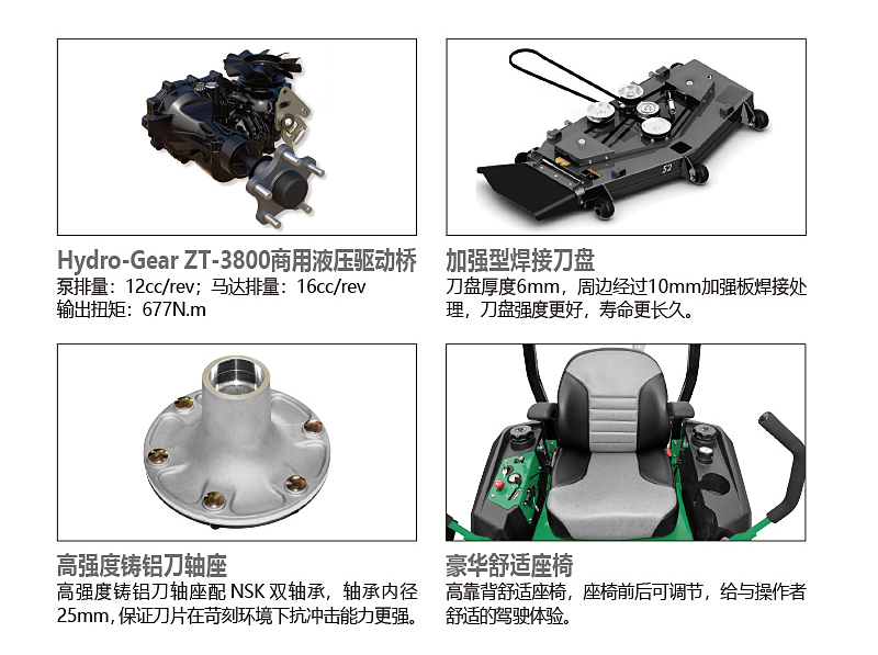 獨立操控桿,舒適座椅,電量顯示,油位顯示、駐車手剎